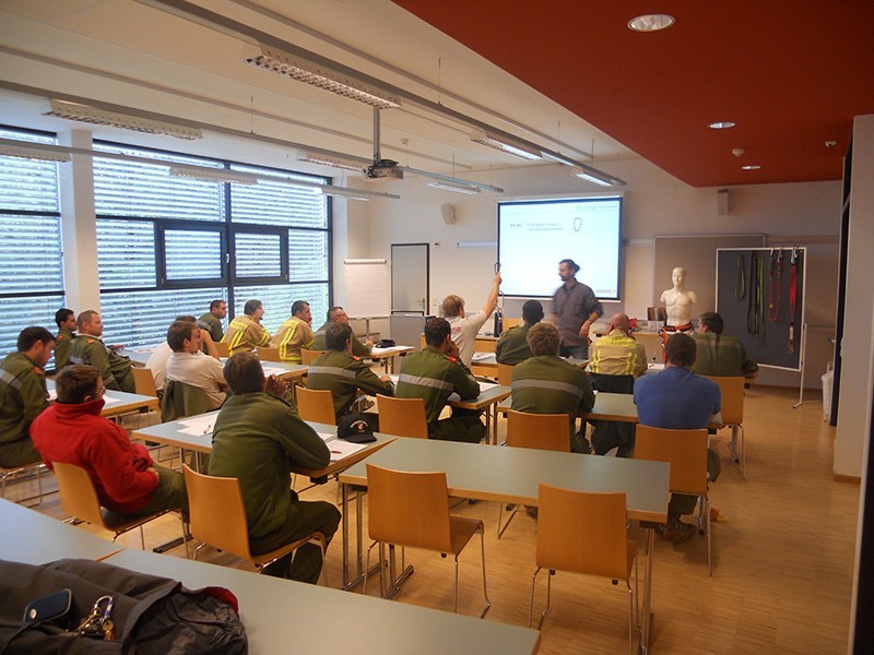Seit Jahren unterstützen wir die Landesfeuerwehrschule Tirol beim Personenrettungs- und Gerätewartlehrgang zum Thema Sachkundigenüberprüfung und Auswahl normgerechter Ausrüstungen und Anschlagpunkte.